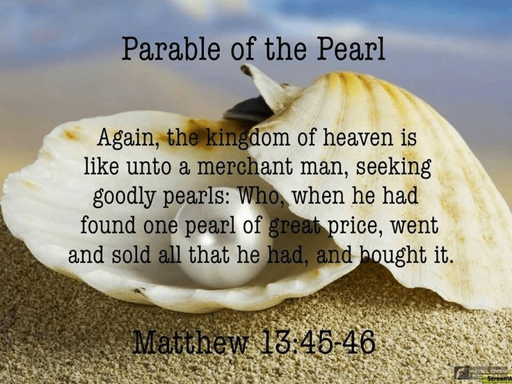“The kingdom of heaven is like a treasure buried in a field, which a person finds and hides again, and out of joy goes and sells all that he has and buys that field. Again, the kingdom of heaven is like a merchant searching for fine pearls. When he finds a pearl of great price, he goes and sells all that he has and buys it.” (Matthew 13:44-46)